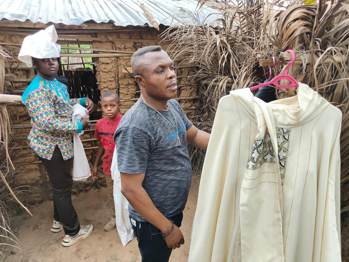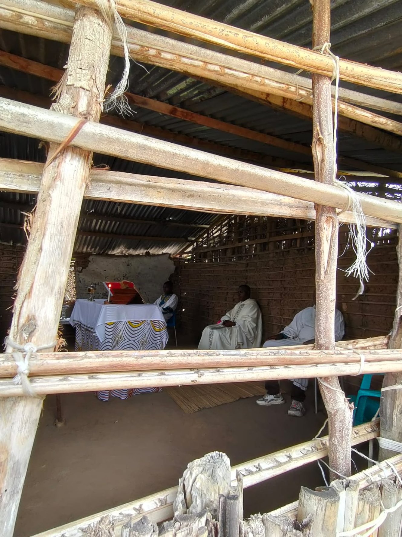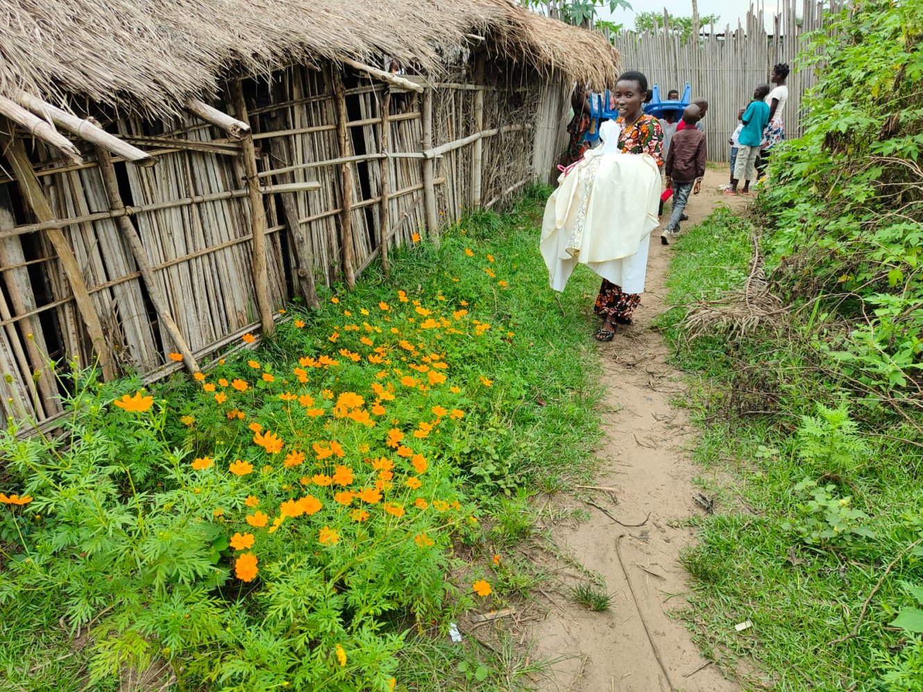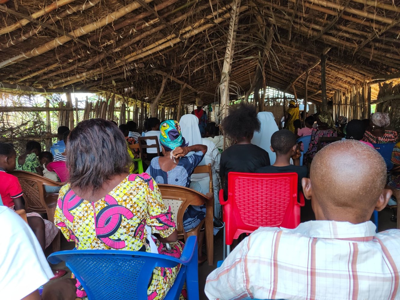 La domenica andando alla messa...in Congo. Venti minuti a piedi dal Centro di Maison de paix su una strada sterrata, chiamiamola così, secondo gli standard locali e salutando cordialmente a destra e sinistra vicini e conoscenti intenti a preparare il luku festivo, polenta di farina di manioca identica a tutti gli altri giorni dell'anno. La sub parrocchia Giovanni Paolo II ci accoglie in tutto il suo splendore di capanna di bambù e tetto di frasche di palma. Salutiamo per primo Ignace, un signore catechista che si meraviglia con gioia che ci ricordiamo il suo nome. Puntuali alle 8,30 si inizia il rito. Belli, davvero belli i canti, dolci e sinuosi, la corale oggi è particolarmente in vena, se non che l'altoparlante, rigorosamente a batteria da queste parti, decide di non collaborare più. Nessun problema, si procede a braccio e il celebrante parte malembe, malembe, cioè piano piano, ma poi si infervora, alza il tono della voce e sottolinea vistosamente, con gesti molto espressivi, il contenuto che comunica. Ai fedeli scappa anche qualche risata e qualche applauso, ci dispiace di non capire e ciò ci ricorda che siamo Mundele, cioè bianchi, ma ci consoliamo partecipando convinti a qualche amen, che come ben si sa è internazionale. Il coro non si scoraggia, riprende vigorosamente con il tam tam appena accordato con fuoco e acqua prima della messa, e non solo si canta, si danza pure con gioia e vitalità che in Africa sovrabbondano sempre. Poiché siamo cattolici anche noi capiamo le fasi della messa e capiamo che il Signore universale ama essere lodato in tutte le lingue del mondo. Sotto questa capanna di paglia e di fango, che fa tanto presepe, ci accorgiamo che il Dio Amore in cui crediamo non ha colore, ma ha il calore della fede che ce lo rende presente e vivo perché qui c'è molto meno che si frappone tra noi e Lui. Gli occhi di tutti i bimbi, spesso in braccio o sulle spalle dei loro fratelli più grandi, ci scrutano curiosi. Li ricambiamo con un sorriso, quasi a scusarci di essere diversi e di incutere  loro un po' di paura. Mentre rientriamo a piedi sentiamo l'eco del salmo 8 che ci accompagna, questa volta in Kikongo..."O Signore nostro Dio, quanto è grande il tuo nome su tutta la terra!
