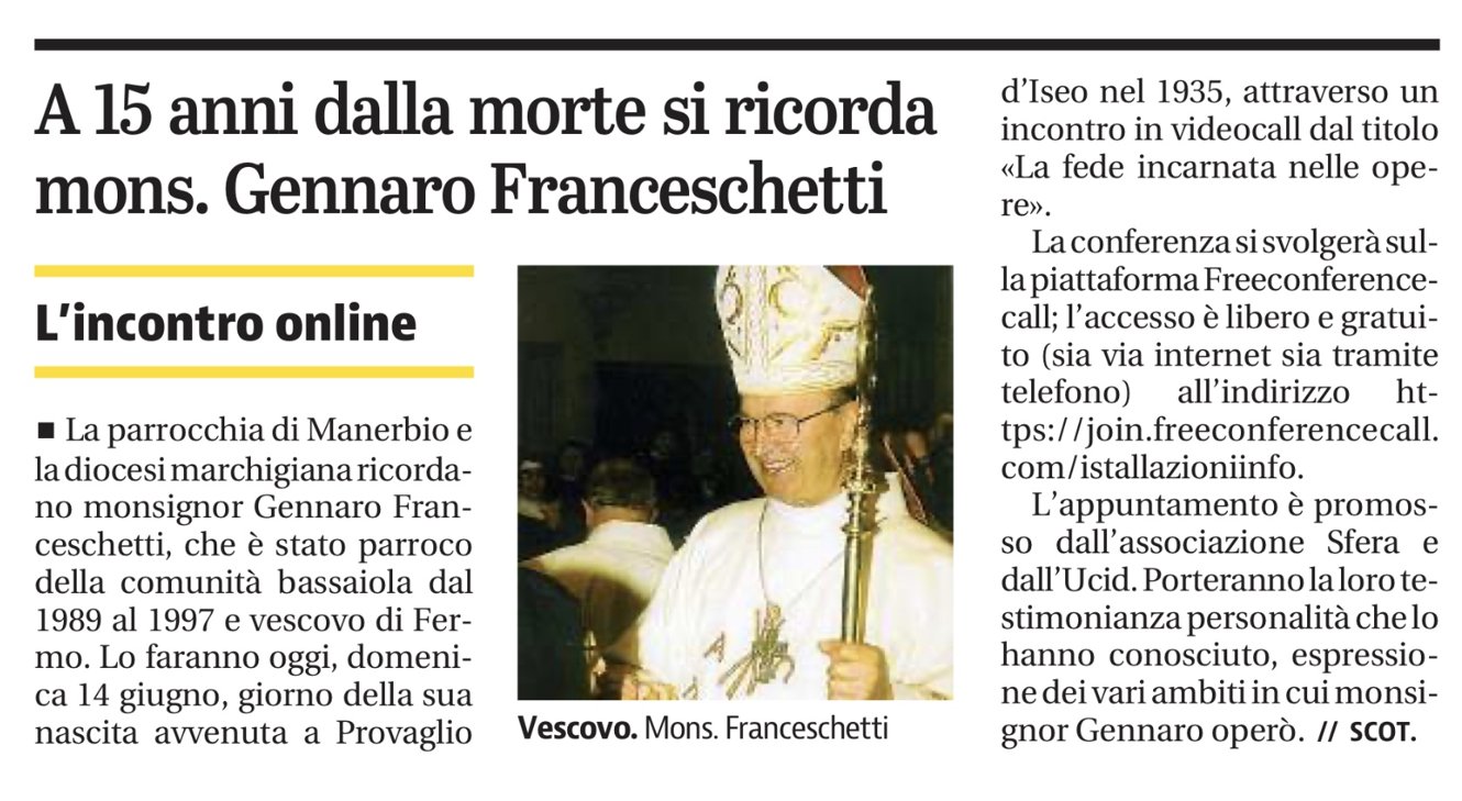 L’Associazione S.F.E.R.A. è dedicata alla memoria di Monsignor Gennaro Franceschetti, sacerdote bresciano e poi arcivescovo di Fermo, nelle Marche.