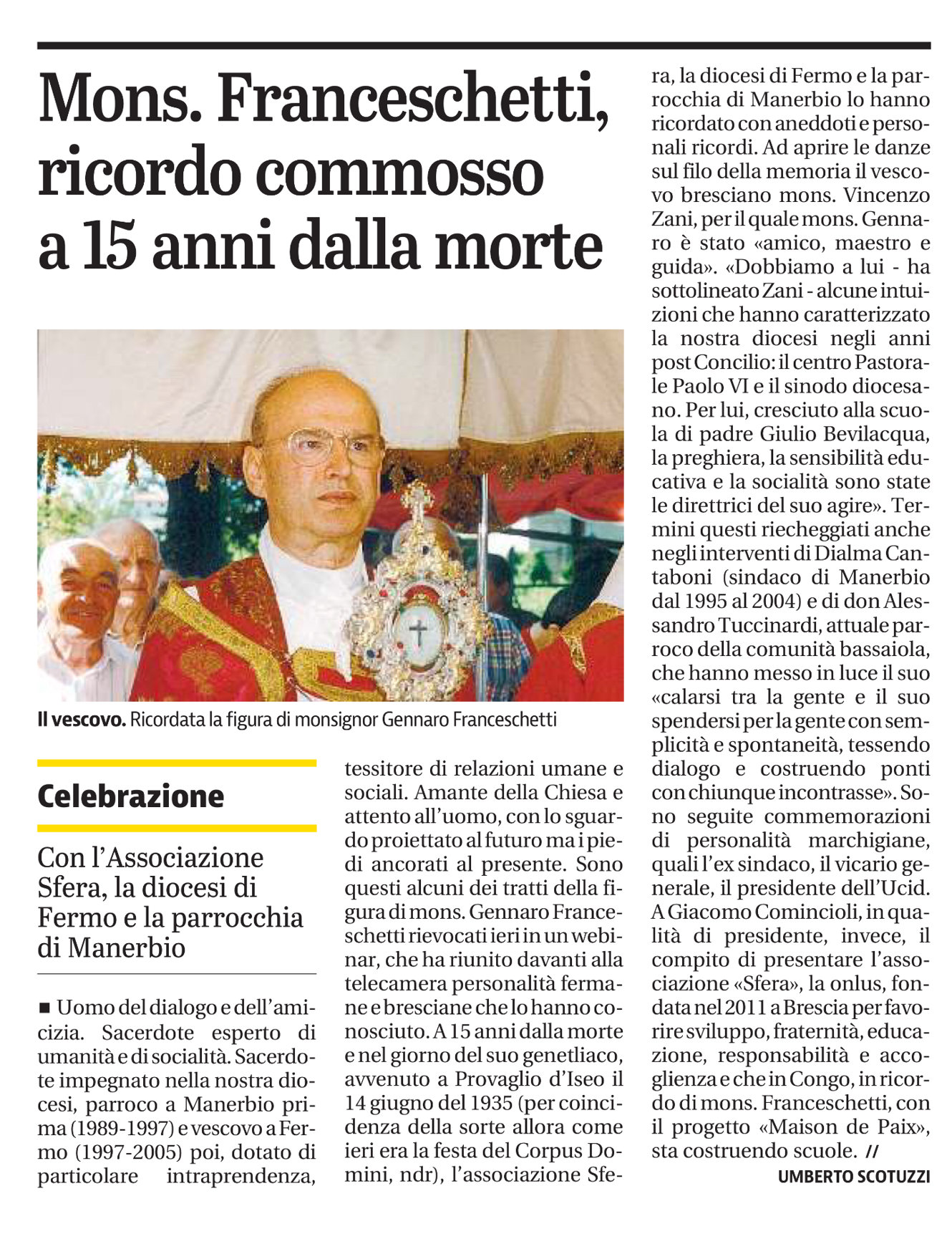 A 15 anni dalla morte si ricorda mons. Gennaro Franceschetti